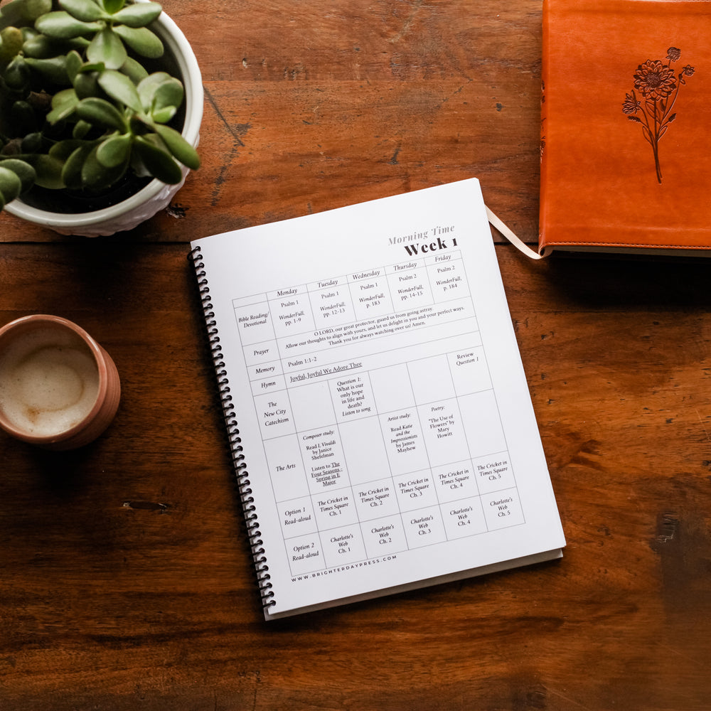 This plan utilizes a handful of “living books” that will need to be borrowed or purchased for the Bible/devotional readings, read-aloud selections, composer and artist study. The Scripture memory, hymn study, prayers, and poetry are all included within the plans themselves.