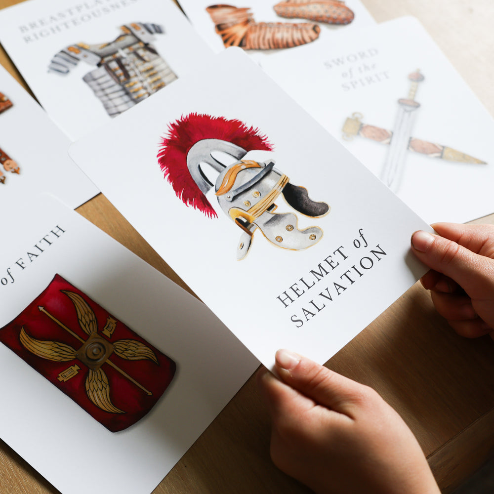 These cards are designed to remind your family that God has equipped us with everything we need in Christ to face the battles of daily life. They would be a helpful tool for children who are fearful or anxious or need to be reminded of God's presence and protection.